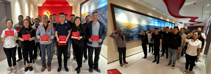 參觀(guān)結(jié)束后,全體黨員面對(duì)黨旗,莊嚴(yán)宣誓,重溫入黨誓詞,公司黨委書(shū)記王兆明為在場(chǎng)的黨員同志發(fā)放政治生日賀卡,并贈(zèng)予政治生日祝福。