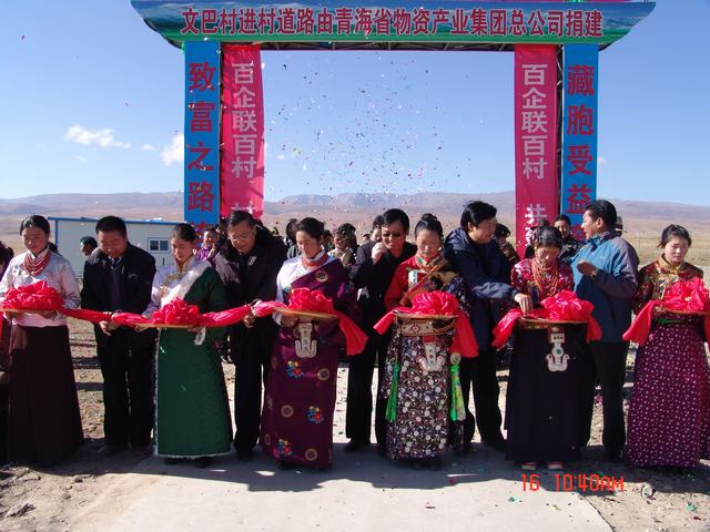 交接儀式上,集團(tuán)公司總經(jīng)理王玉輝、共和縣人大常委會(huì)主任尕瑪才讓為元者村黨員活動(dòng)室、科普文化室、醫(yī)療衛(wèi)生室揭牌之后,與黨委書(shū)記白家林、紀(jì)委書(shū)記王仁芬、共和縣委常委、組織部長(zhǎng)官卻南見(jiàn)等領(lǐng)導(dǎo)為共和縣黑馬河鄉(xiāng)文巴村進(jìn)村道路通車(chē)剪彩。集團(tuán)公司黨委書(shū)記白家林代表省物產(chǎn)集團(tuán)向共和縣江西溝鄉(xiāng)提前捐送元者村游牧民定居點(diǎn)工程配套資金100,000元。集團(tuán)公司紀(jì)委書(shū)記王仁芬、共和縣委常委、組織部長(zhǎng)官卻南見(jiàn)、江西溝鄉(xiāng)元者村村長(zhǎng)、文巴村村長(zhǎng)分別代表捐建方、受捐方致辭發(fā)言。至此,青海物產(chǎn)集團(tuán)在"百企聯(lián)百村"活動(dòng)中擬投入的1,455,500元,已到位1,255,500元。剩余的200,000元游牧民定居點(diǎn)工程建設(shè)項(xiàng)目捐款將根據(jù)工程進(jìn)度分期轉(zhuǎn)付。